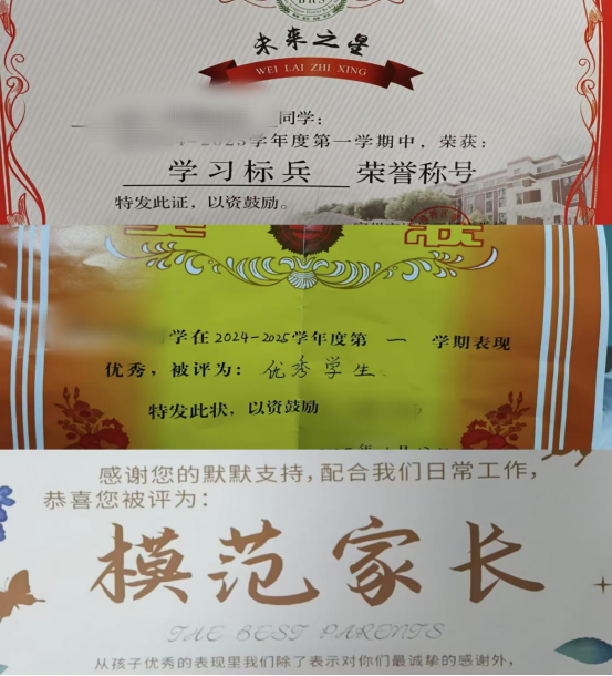 这些奖状不仅是对他们过去努力的肯定,更是对未来无限可能的期许,如同璀璨的星星,照亮了孩子们纯真的笑脸。令人惊喜的是,这次不仅孩子们收获颇丰,学校还特地为家长颁发了“模范家长”的荣誉证书,以表彰家长们在孩子成长道路上所付出的辛勤与努力。这份证书沉甸甸的,他代表着护理员妈妈的爱和陪伴,在每个孩子的心中种下了希望的种子。