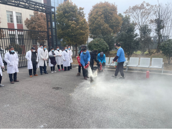 其次是灭火实操:在保证人身安全的前提下,在空旷处点燃木柴,模拟一处火源,让职工学以致用。尤其对消防控制室人员、食堂工作人员及一线护理人员进行了实操训练,职工熟练掌握消防器材的使用方法,提高了应对初起火灾扑救能力。