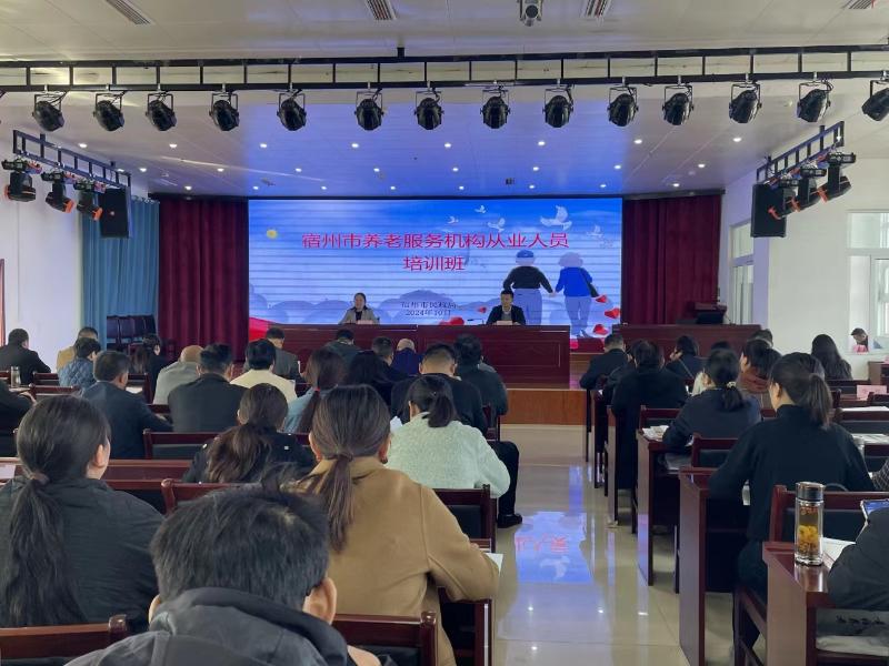 为进一步提升宿州市养老服务工作质量,10月23日至24日,宿州市民政局在宿州市埇桥区民政干部培训中心举办全市养老机构从业人员培训班。省民政厅老龄保障处副处长陈帅南、市民政局党组成员、副局长张海宏及各县区民政局分管副局长、业务负责人,以及部分养老机构负责人、护理员等近150人参加了培训。